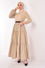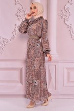 Kemerli Şifon Piliseli Elbise Vizon NEV14928