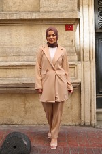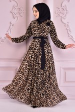 Kuşaklı Şifon Elbise Kahverengi NEV24243