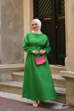 Kuşaklı Elbise Zümrüt ASM2596
