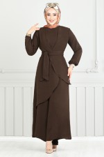 Asimetrik Kesim Tesettür Takım 4743ZNK903-M Kahve