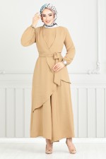 Beli Bağcıklı Tesettür Elbise 779ASE1099-M Taba