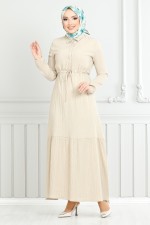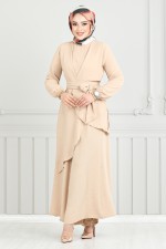 Beli Bağcıklı Tesettür Elbise 779ASE1099-M Taş