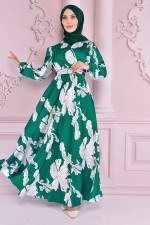 Kemerli Şifon Elbise Zümrüt NEV14944