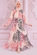 Pullu Ferace Elbise Koyu Pudra ASM2579
