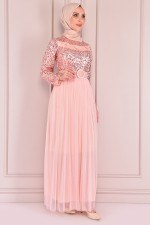 Pullu Ferace Elbise Pudra ASM2574