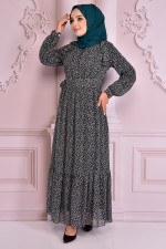 Kemerli Şifon Elbise Zümrüt NEV14944