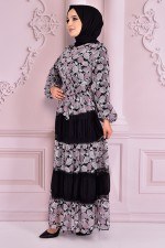 Çiçekli Şifon Elbise Siyah NEV14628