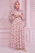 Kemerli Dantel Elbise Gül Kurusu NEV14734