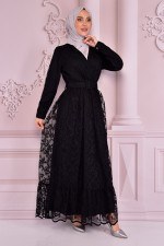 Kemerli Dantel Abiye Siyah NEV14903