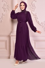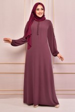 Taş Detay Ferace Elbise Gül Kurusu ELC22204