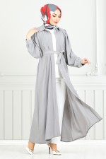 Gömlek Yakalı Elbise Ferace 0037BGS895-M Gri