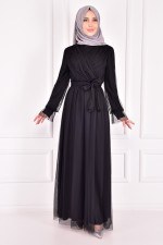 İnci Detay Abiye Siyah ASM22671