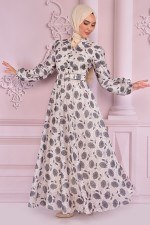 Kemerli Dantel Elbise Antrasit NEV14734