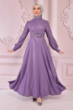Kemerli Saten Elbise Lila ASM2464