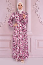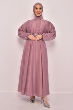Kuşaklı Şifon Elbise Gül Kurusu NEV14647