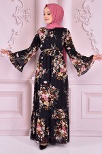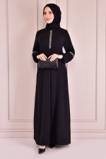 Taş Detay Ferace Elbise Siyah ELC2338