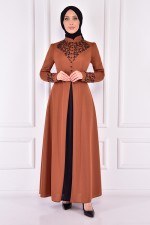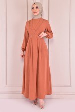 Nakışlı Düğmeli Elbise Kiremit ASM2158
