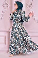 Kuşaklı Saten Elbise Zümrüt NEV14899