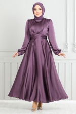 Belden Bağlamalı Saten Abiye 5665END900-M Koyu Lila