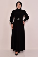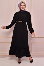 Kuşaklı Elbise Siyah TBT12052