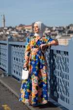 Düğmeli Elbise Mavi END5530