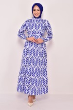 Kuşaklı Elbise Saks EFL12203