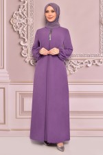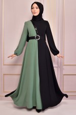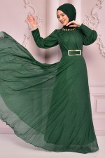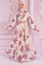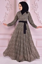 Kuşaklı Şifon Elbise Vizon NEV24243