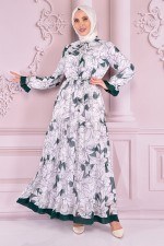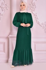 Bağcık Detay Şifon Elbise Zümrüt NEV14863