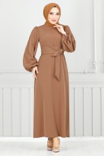 Balon Kollu Tesettür Abiye 5527END900-M Taba