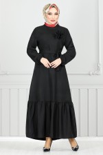 Broş Gül Detaylı Elbise 801OZR1047-M Siyah