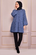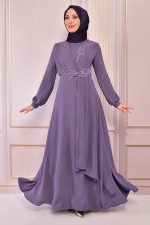 Kuşaklı Şifon Elbise İndigo EFS1221