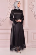 Kuşaklı Saten Abiye Pudra ASM14823