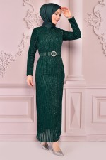 Kuşaklı Şifon Elbise Kahverengi NEV24243