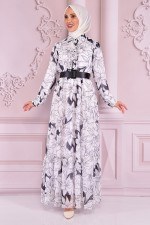 Kemerli Dantel Abiye Krem NEV14910