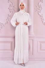 Piliseli Şifon Elbise Gül Kurusu NEV14618
