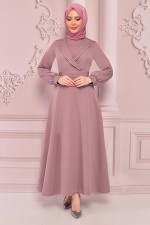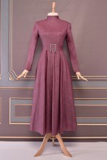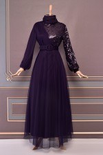 Kemerli Tül Abiye Mor ASM2519