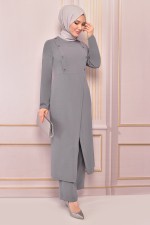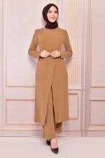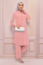 Düğmeli Kombin Pudra ASM2562