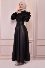 İnci Detay Abiye Siyah ASM2483