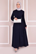 Taş Detay Elbise İndigo ASM2507