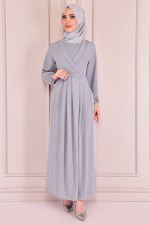 İnci Detay Elbise Gri ASN2141