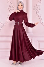 Taş Detay Saten Abiye Siyah ASM21357