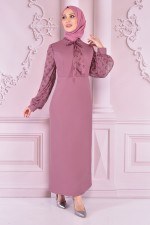 Tül Detay Elbise Gül Kurusu ASM2451