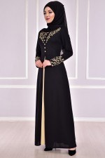 Nakışlı Düğmeli Elbise Siyah ASM2158