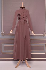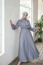 Kuşaklı Saten Abiye Antrasit ASM14823