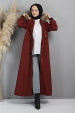 Kapşonlu Ribanalı Mont Bordo MİH15500