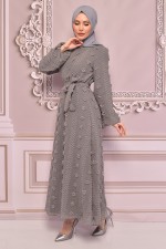Kuşaklı Elbise Gri END15510
