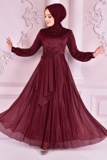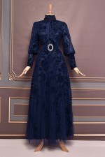 Kuşaklı Saten Abiye Lacivert ASM2537