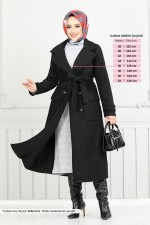 Manşeti Düğmeli Kaşe Kaban 7021TRT1045-M Siyah