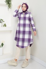 Yarım Fermuarlı Ekose Tunik 6915S982-M Lila