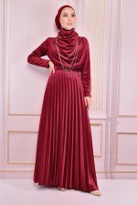 Kemerli Kadife Abiye Kırmızı NEV14967